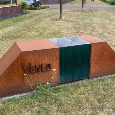 Glaswaren symbolisieren die Fossa bei Walbeck. Venlo-Ost.